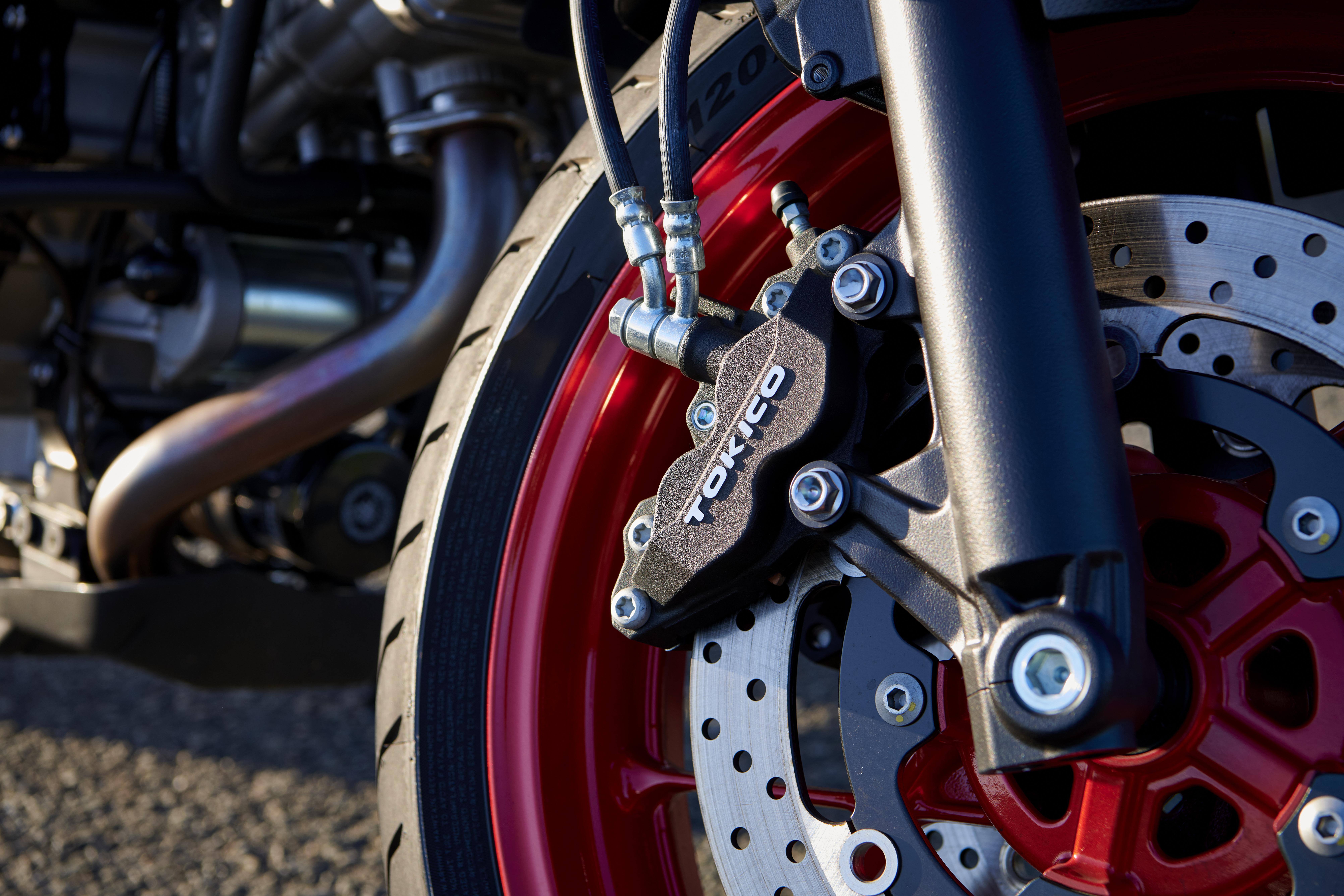 Le cadre léger en treillis tubulaire en acier offre un équilibre parfait entre rigidité et flexibilité. La suspension avec fourche télescopique de 41 mm et mono-amortisseur arrière (réglable sur 7 positions) garantit une conduite stable et un confort élevé. Le nouveau réservoir de 17,4 litres permet une grande autonomie tout en conservant une silhouette élancée. La hauteur de selle ergonomique de 795 mm et le large guidon en aluminium offrent une position assise confortable et permettent une conduite contrôlée sur de longues distances. Le double frein à disque avant (290 mm) avec étriers à 4 pistons et l'ABS assurent une décélération constante. Les pneus sport-touring Pirelli Angel GT II garantissent une excellente adhérence sur sol sec comme sur sol mouillé.